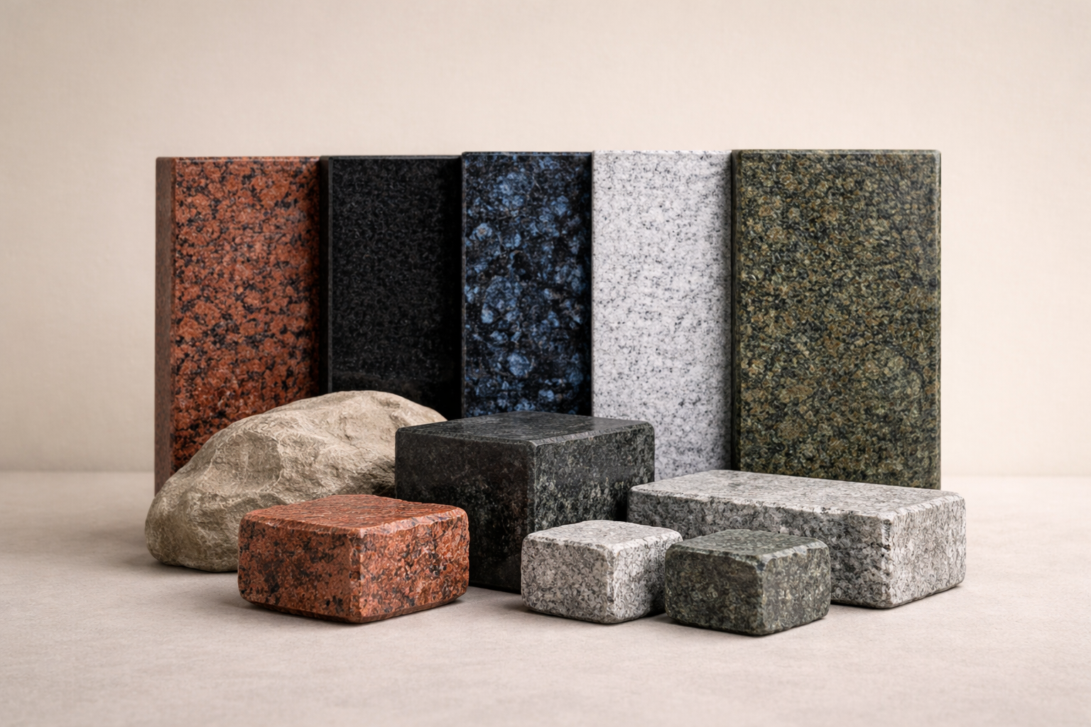 Ми виготовляємо гранітні слеби з натурального українського каменю власного видобутку. У виробництві застосовуємо близько 20 видів граніту, що дозволяє підібрати оптимальний колір, текстуру та фізичні характеристики матеріалу під конкретний проєкт. Слеби підходять для фасадів, інтер’єрів, сходів, стільниць та індивідуальних архітектурних рішень будь-якої складності.